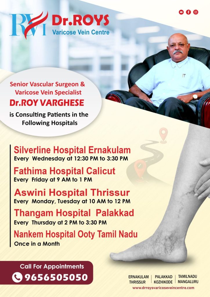 Dr Roy Varghese is a renowned vascular surgeon, varicose vein specialist, medical pioneer and head of Dr Roy’s Varicose Vein Centre . He is a minimally invasive endo vascular varicose vein specialist, who has been honored with many fellowship Degrees from the most Worldrenowned Medical Universities. He has treated upon more than 500000 patients with varicose vein from across the country.